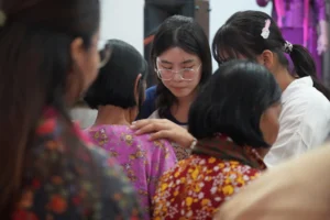 Hannah praying for the Cambodians at the altar